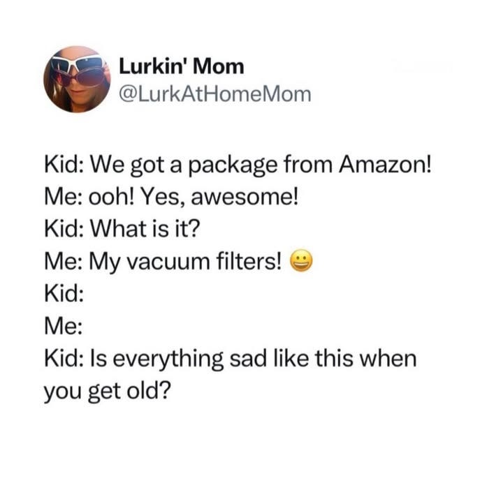 Welcome to Monday Momlife Memes, a great way to get in a few laughs and some encouragement at the start of a new week. Laughter is the best medicine, and we could all use some positivity, am I right? So open up that browser or Substack app if you haven’t already, cos this is a whole lot of memes.